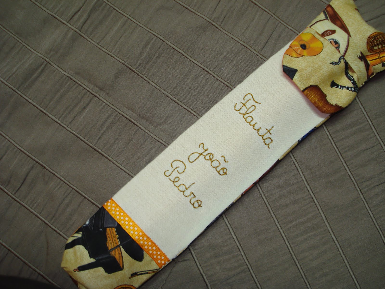 Mais um trabalho de hoje, uma bolsa para guardar a flauta do meu filhote, já há muito que tinha comprado este tecido com instrumentos para fazer este trabalho...calhou hoje!!!! espero que gostes filhote ;))